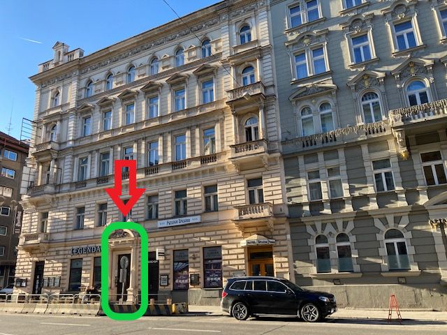 U vchodu do budovy a po vystoupení z výtahu ve 3. patře nutno zvonit na zvonek.